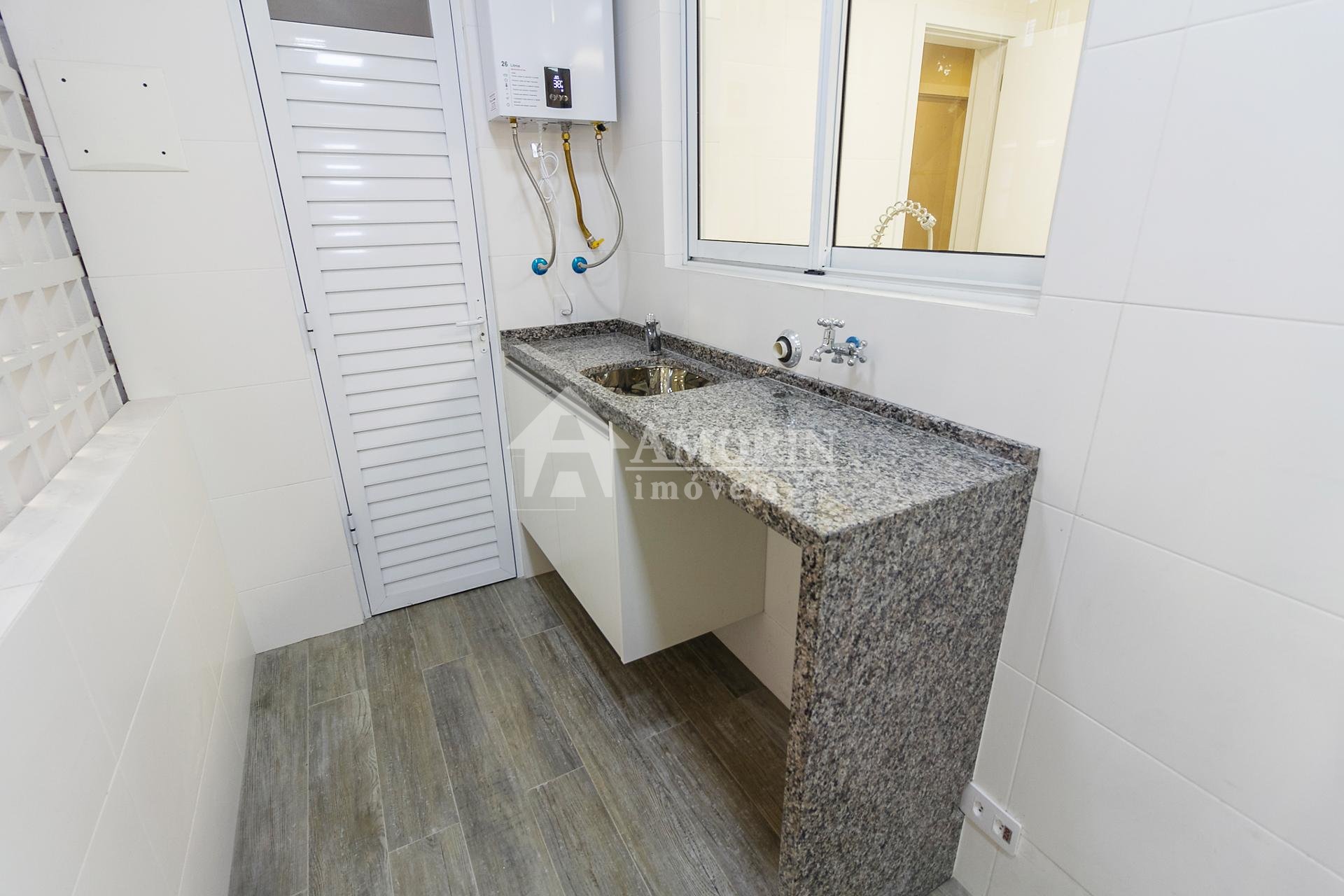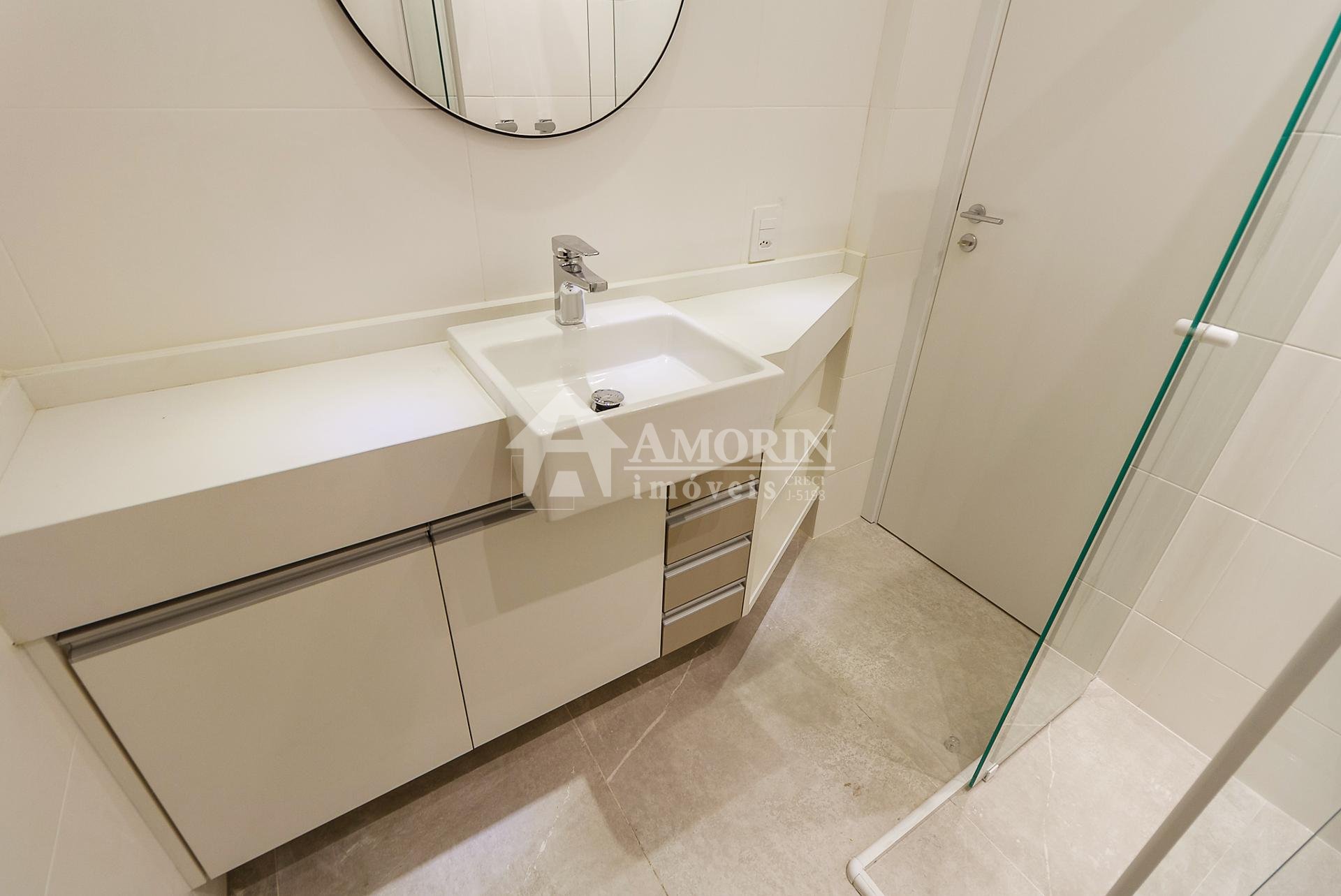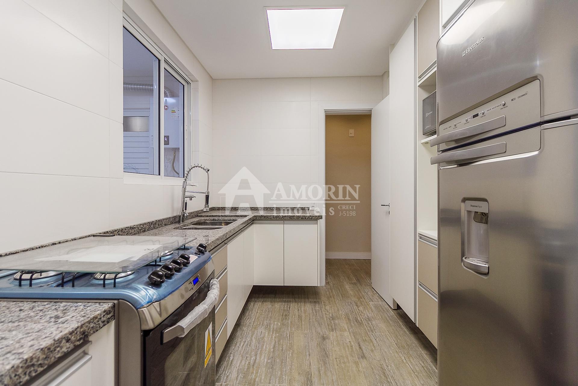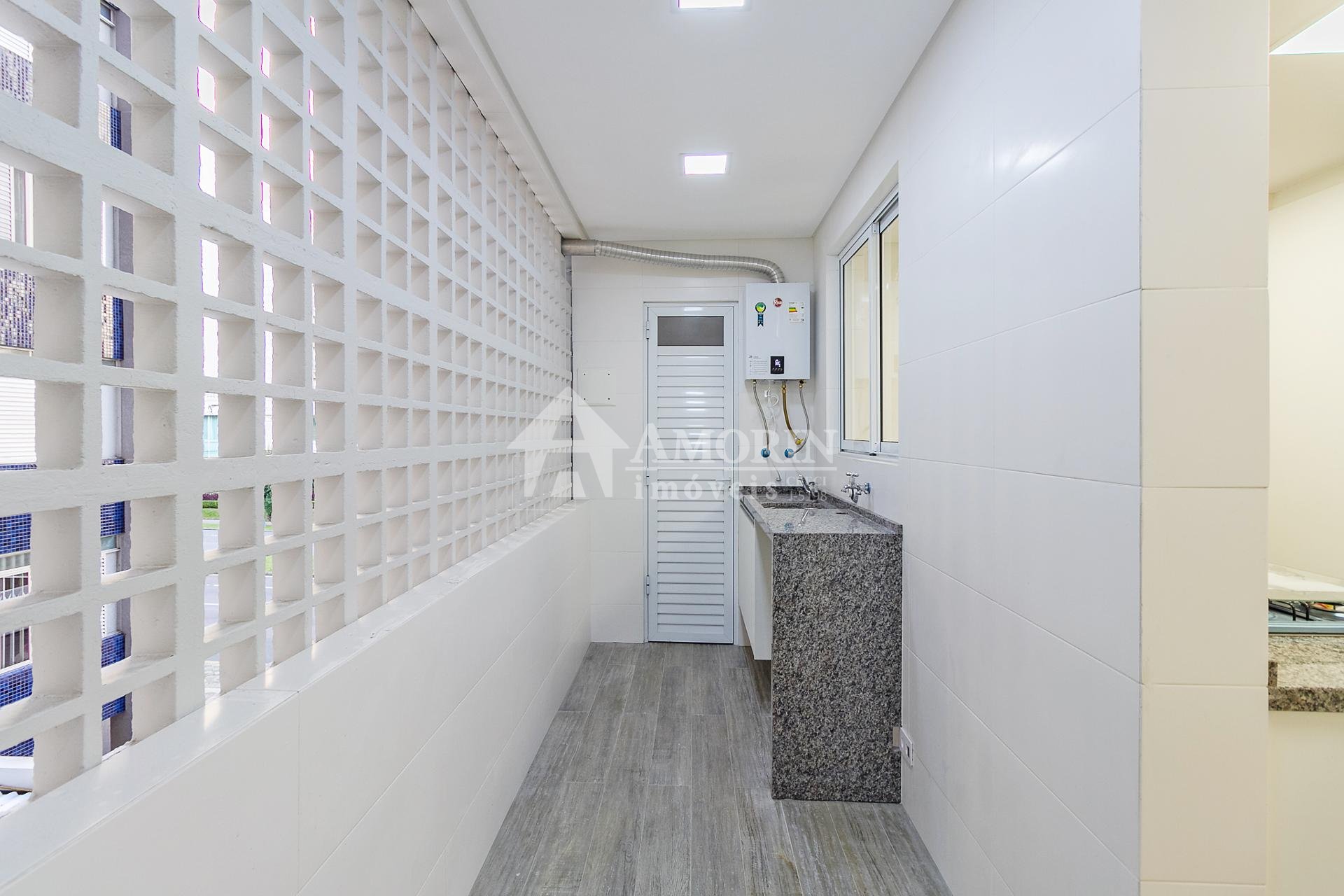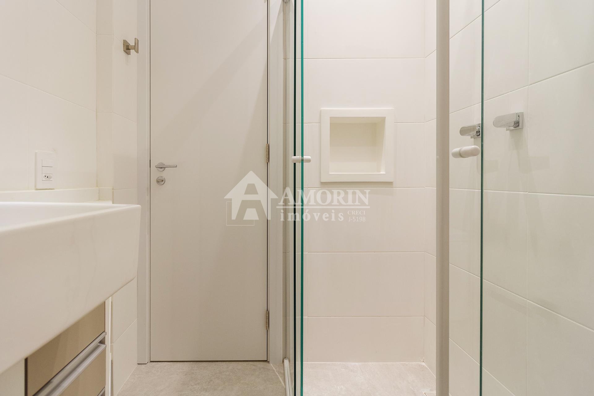 Com 101,42 m² de área privativa, o imóvel é bem ventilado e iluminado. Possui três quartos, sendo uma suíte com armários planejados, além de sala integrada, lavabo e cozinha equipada com armários.