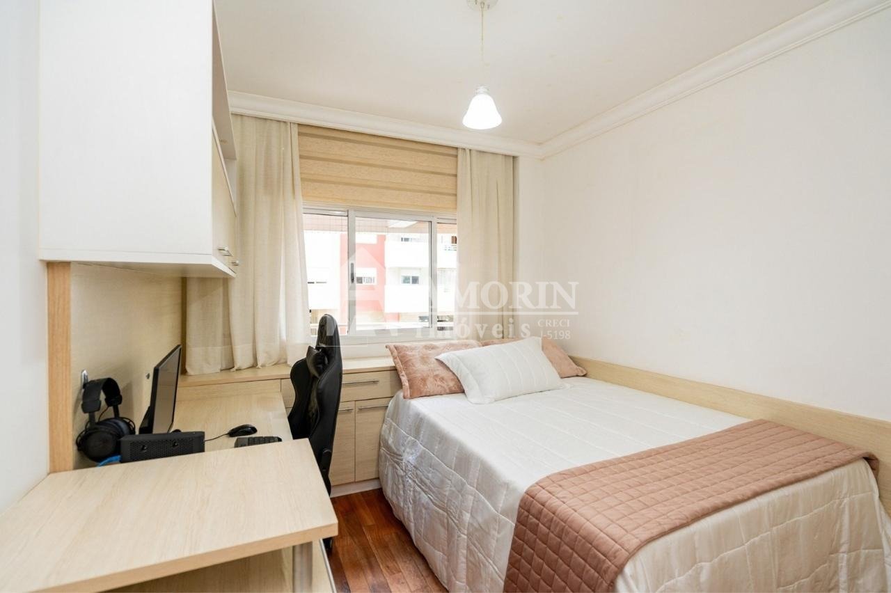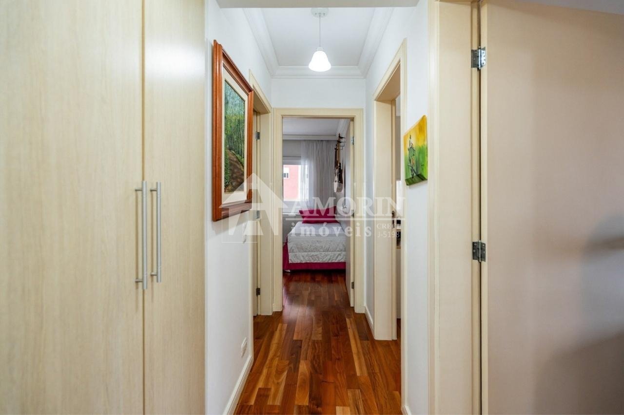 O imóvel conta com uma sala ampla e iluminada, ideal para dois ambientes, com acesso a duas varandas que proporcionam ainda mais ventilação e luminosidade. São três quartos com armários planejados, sendo uma suíte com hidromassagem, perfeita para momentos de relaxamento. A cozinha é equipada com armários sob medida e balcão em granito, e a área de serviço oferece funcionalidade com armários, banheiro e uma despensa a qual pode ser utilizada como escritório. Além disso, o apartamento possui um banheiro social e um lavabo, agregando praticidade ao dia a dia.