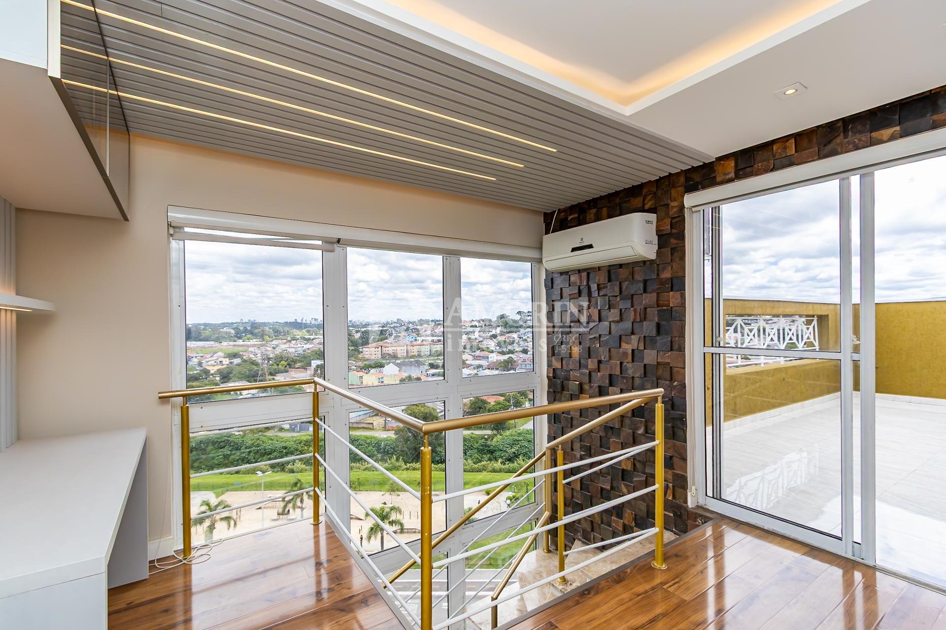 9º Andar Cobertura duplex Face Norte Vista para Curitiba localizada em PinhaisPR no bairro Emiliano Perneta, no condomínio Grand Chateau ao lado do PARCÃO, próximo ao shopping Jockey Plaza, DETRAN, Havan, Atacadão, Nichele, Burger King, Casa do Produtor e conta com: