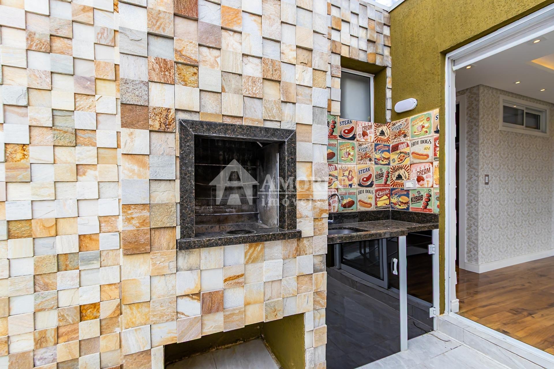 Quiosque com churrasqueira;