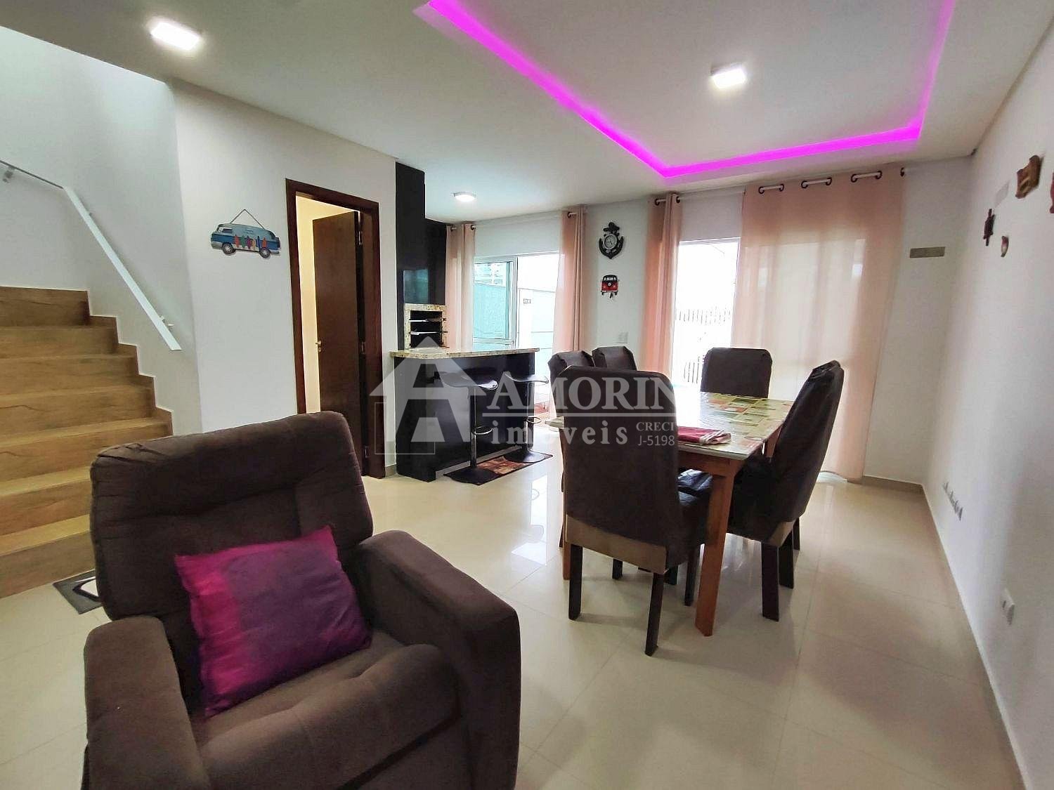 Excelente sobrado, pronto para morar, com 3 quartos (1 suíte), 2 com sacada e ar condicionado, sala integrada à copa com churr...