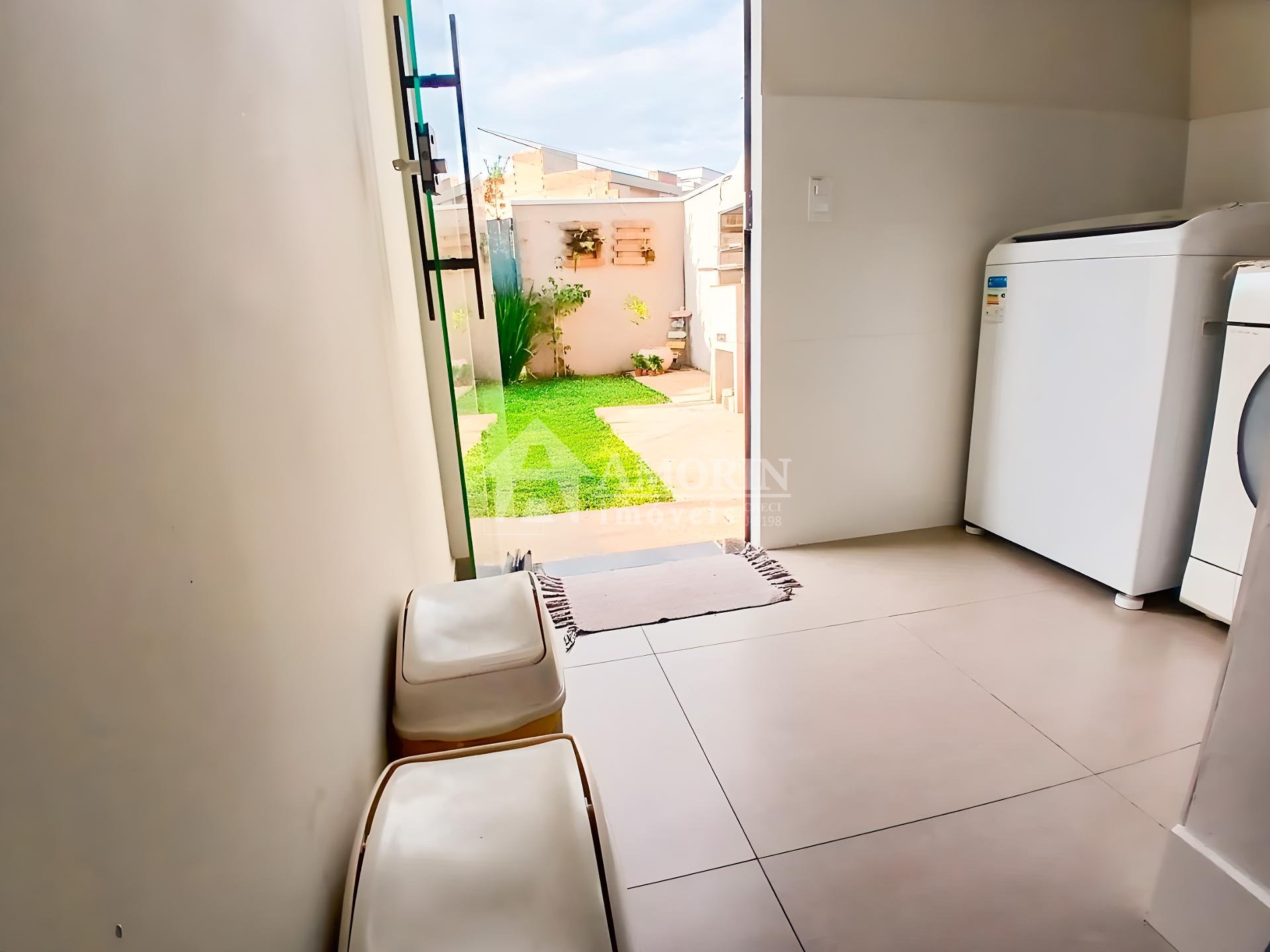 Lavabo com janela e lavanderia coberta e fechada, com tomadas 110v e 220v.
